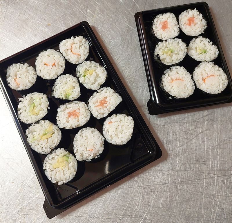 Venez découvrir dans notre rayon traiteur nos makis faits maison : boîte de 6 ou de 12 !
